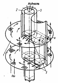 Известно, что производительность тарелок повышается при контактировании фаз в прямотоке. Однако при прямоточном движении и большой скорости пара (газа) жидкость смещается в направлении сливного кармана, что затрудняет работу сливных устройств.