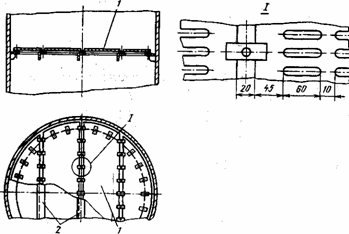 Решетчатые провальные тарелки (рисунок 2.30) используют в установках, рабочая производительность которых отклоняется от расчетной не более чем на 25%.