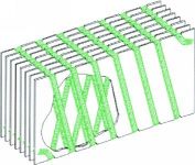 Примером насадки регулярного типа являются те же кольца Рашига, Паля и т.д. если они укладывают правильными рядами, сдвинутыми друг относительно друга (рисунок 2.31б). Обычно для этого применяют большие кольца (размером не менее 50х50 мм).