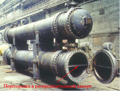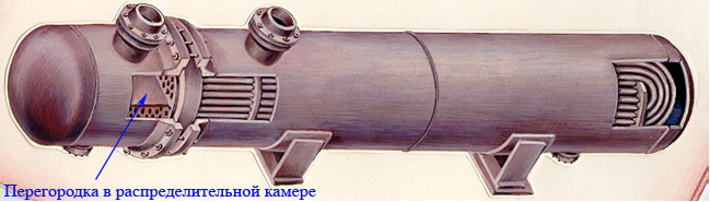 Для обеспечения раздельного ввода и вывода теплоносителя в распределительной камере предусмотрена перегородка (рисунок 2.57).