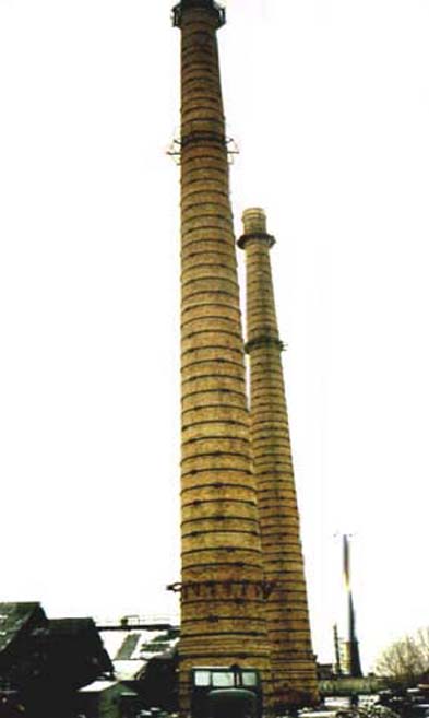 Большая часть эксплуатируемых в настоящее время дымовых труб изготовлена из стали Ст3. Металлические трубы конической формы в соответствии с нормалями имеют высоту 30,35 и 40 м при диаметре на выходе до 2000 мм и у основания – до 3200 мм. К фундаменту они крепятся фундаментными болтами (до 16 штук).