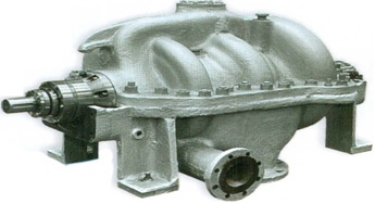 5) По способу разъема корпуса – с торцовым (см. рисунок 2.95), осевым (горизонтальным) разъемами (см. рисунок 2.97) и секционные. Осевой разъем корпуса лучше удовлетворяет требованиям строительно-эксплуатационной практики, так как обеспечивает уменьшение размеров машинного зала станций и позволяет выполнять разборку центробежного насоса без отсоединения его от всасывающего трубопровода.