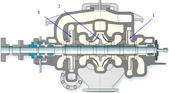 1 – колеса одностороннего всасывания | 2 – колесо двухстороннего всасывания |