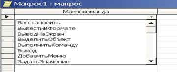Рис.9.11 - Список макрокоманд у вікні макросу