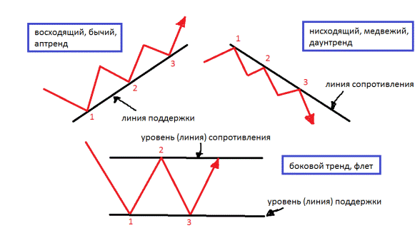 Все эти три типа трендов показаны на рисунке ниже: