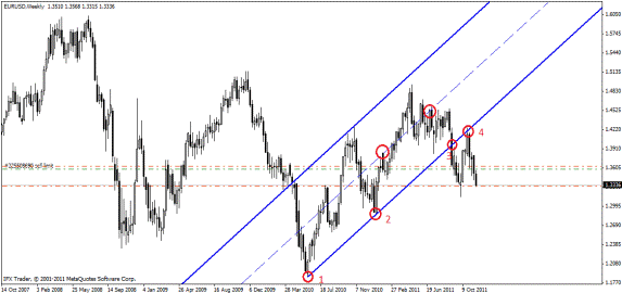 На тайм фреймах дневных, недельных, месячных серединная линия при пробитии ее против трена, все таки дает отскок, причем может быть и значительный (ниже недельный график).