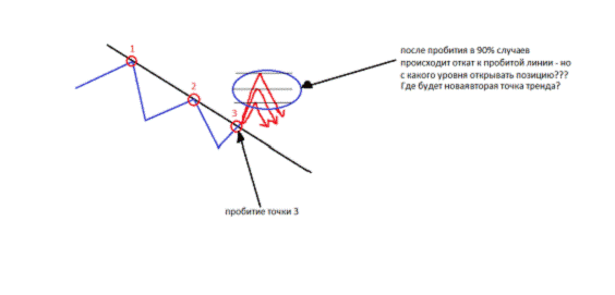 2) Пробитие тренда и образование нового тренда: