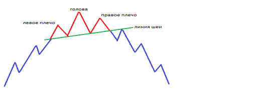 Думаю, про эту фигуру слышали все. Напомню ее составляющие: левое плечо; правое плечо; голова; линия шеи (еще называют неклайн – от англ. neckline – neck – шея, line - линия). Появляется она на восходящем тренде.
