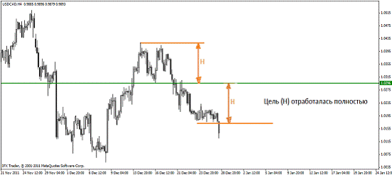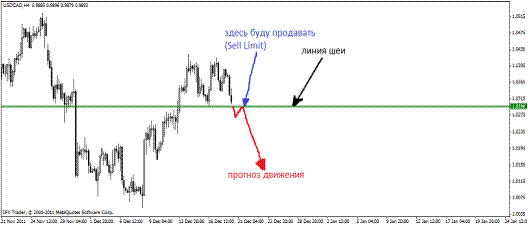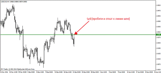 Теперь проводим линию шеи и ждем ее пробития и отката к ней: