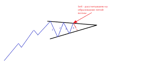 Да, и еще. Ведь сделки можно заключать и при формировании пятой волны. По простому, можно покупать или продавать, когда цена третий раз подходит к одной из сторон треугольника. Замечу, что такие сделки являются более рискованными, потому-что может быть только четыре волны в треугольнике.