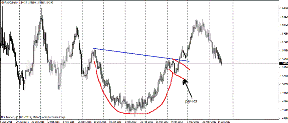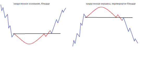 Довольно редкая фигура граф. Анализа – блюдце. Еще называют закругленная вершина / основание, чашка с ручкой, перевернутая чашка с ручкой. Названия сразу навеивают в сознание чашу кофе…))) Посмотрите ниже на рисунок – там я нарисовал блюдце и перевернутое блюдце.