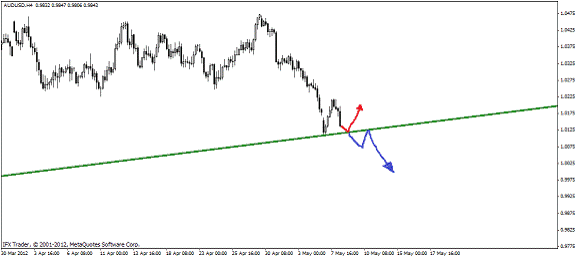 При подходе цены к линии поддержки покупаем (красная стрелочка), а если пробивает нашу поддержку, то на откате продаем пару: