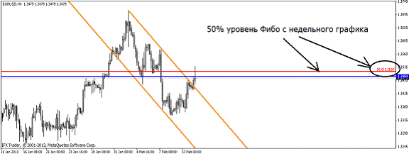 Так же наша падающая звезда уперлась в сильный 50% уровень фибо недельного графика.