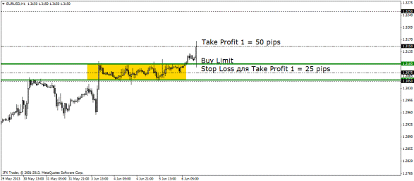 А вот через парочку свечей мы достигли и второго профита.