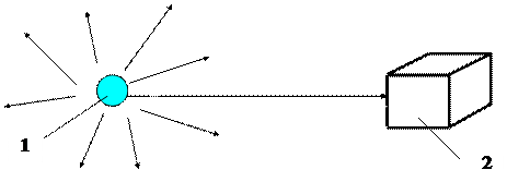 1- точечный источник g-излучения; 2 - облучаемое вещество