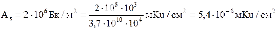 As - среднегодовая активность (плотность загрязнения радио нуклидами) поверхности земли, мКu/см 2;