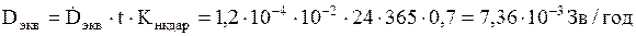 0,6 ×10 -6 × 24 × 365 × 0,7 = 0,0037 Зв/год.
