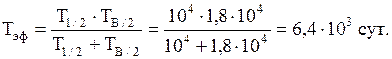 Эффективный период полувыведения радионуклида вычисляем по формуле (5.3)