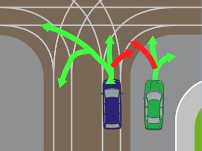 7. При повороте налево или направо на перекрестках или во дворы прилегающих территорий водитель обязан уступить дорогу пешеходам, переходящим проезжую часть независимо от наличия пешеходного перехода по линии тротуаров или обочин, а также велосипедам двигающимся по велосипедной дорожке.