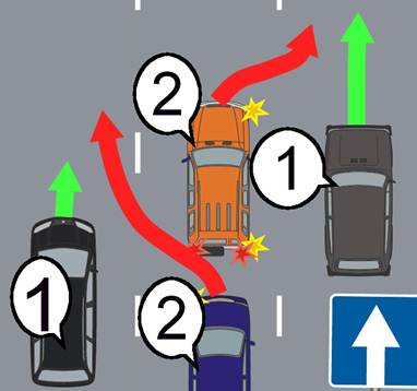 8.4. При перестроении водитель должен уступить дорогу транспортным средствам, движущимся попутно без изменения направления движения. При одновременном перестроении транспортных средств, движущихся попутно, водитель должен уступить дорогу транспортному средству, находящемуся справа.