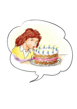10. Sie kommen nach Hause und sehen auf dem Tisch eine Torte und einen großen Blumenstrauß.