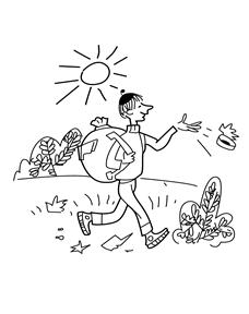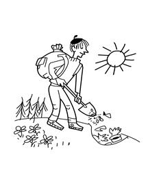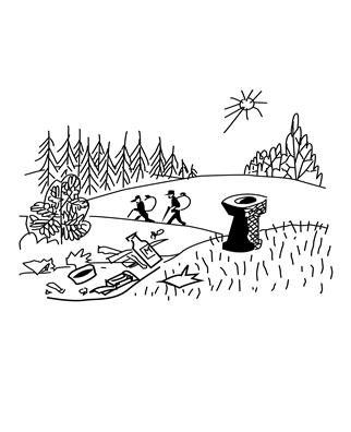 Was mache man, wenn kein Papierkorb da ist? Welcher von diesen Wanderern handelt richtig? Warum?