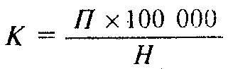 где х— коэффициент преступности; /7 — число преступлений или число лиц, их совершивших; Н — численность населения в возрасте 14 лет и старше.