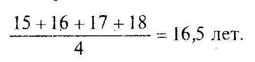 Действительный средний возраст изучаемой совокупности равен 17,25 года (15х100+16х150+17х150+18х600)/1000.