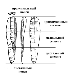 Сегмент, включающий в себя конец противоположный концу с ударным бугорком, называется дистальным.