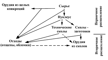 Изготовление орудий из сколов-заготовок называется вторичным расщеплением.