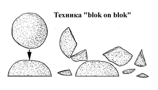 Предполагается, что первые люди получали нужные куски камня, имитируя природные процессы: бросали камень на камень и потом отбирали обломки нужной формы и размера (рис. 9). Технику “блок-о-блок” называют техникой ненаправленного удара.