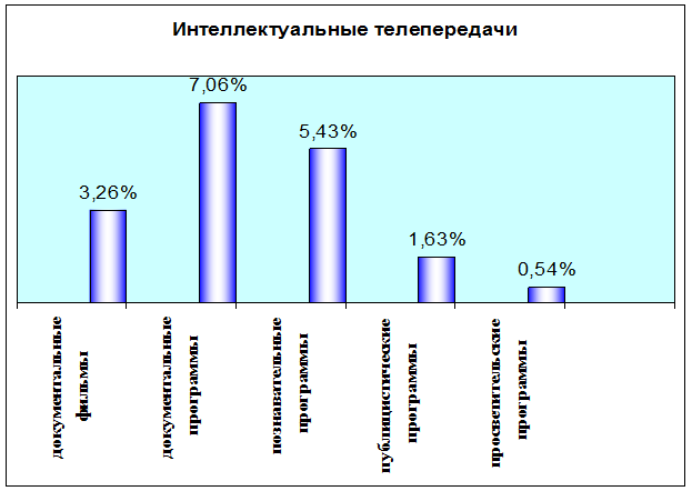 2) доля телепередач интеллектуальной направленности составляет всего около 18%, среди них: