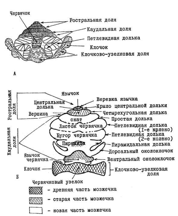 Рис. 9. Схема строения мозжечка млекопитающих: