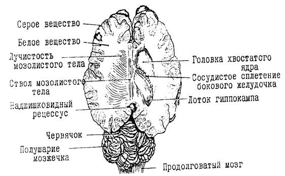 Рис. 14. Головной мозг лошади на горизонтальном срезе