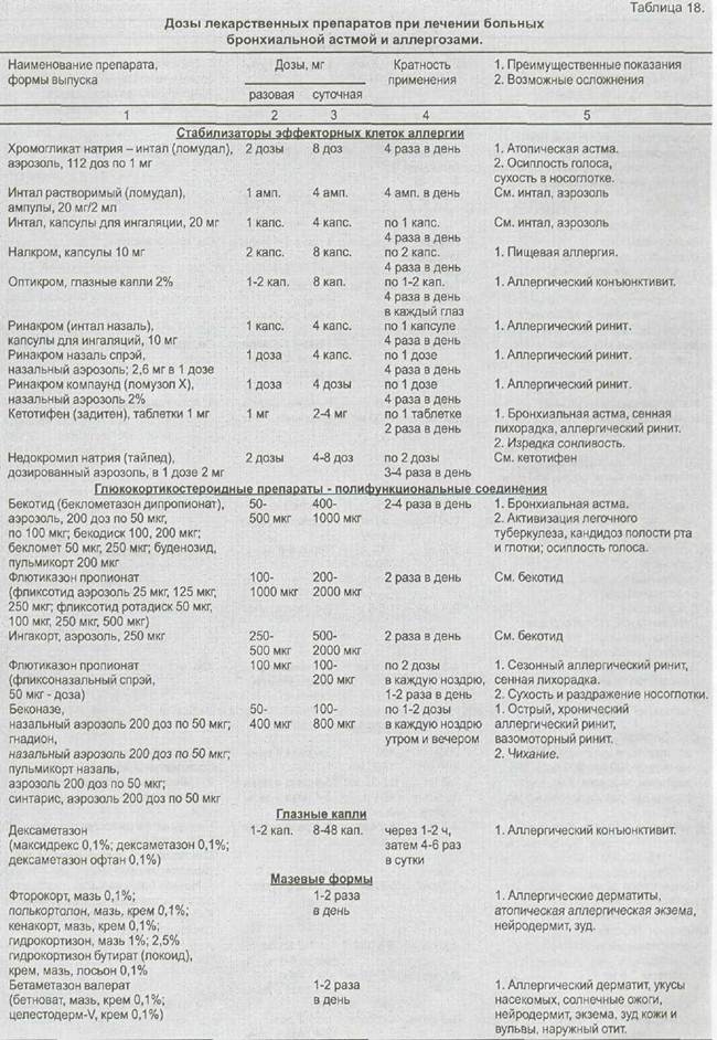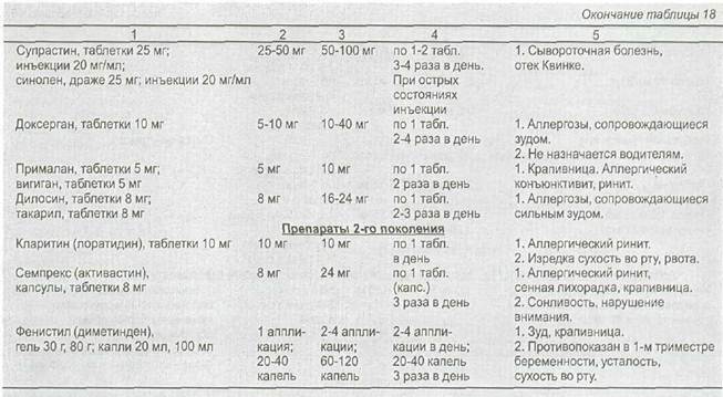 Для лечения аллергического ринита, острой крапивницы используются антигистаминные препараты (см. табл. 18).