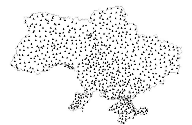 На території України було створено систему приблизно рівномірно розміщених пунктів. Їх координати визначались поетапно від загального до часткового.