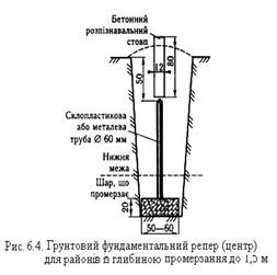 5. Геодезичні пункти необхідні для виконання топографічних зйомок, оновлення карт і планів, при вишукуваннях споруд, корисних копалин тощо, розробці генеральних планів, зведенні і розмічуванні споруд. Тому пункти державних геодезичних мереж і мереж згущення (планових і висотних) повинні бути надійно закріплені для тривалого зберігання. Геодезичні пункти закріплюють ґрунтовими та стіновими знаками постійного, а для знімальних мереж – тимчасового, типу.