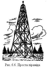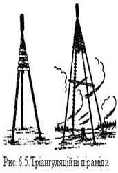 Проста піраміда (рис. 5) за висотою не перевищує 10 м. Теодоліт при вимірюваннях кутів на пірамідах установлюють на штативі над тріангуляційним центром.