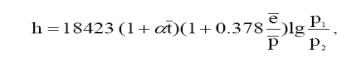 Ця залежність у строгому вигляді досить складна і враховує багато факторів фізичного стану атмосфери: атмосферний тиск, температуру і вологість повітря, широту місця спостереження. Вона носить назву повної формули барометричного нівелювання. На практиці застосовують простіший і зручніший для використання вираз: