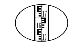 Вертикальний штрих сітки ниток наводять на центр рейки і беруть відлік за горизонтальним штрихом. Спочатку беруть кількість підписаних дециметрів (16), потім повних сантиметрових поділок (5) і на око оцінюють десяті частки сантиметрової поділки (4). Повний відлік складає 1600 + 50 + 4 = 1654 мм.