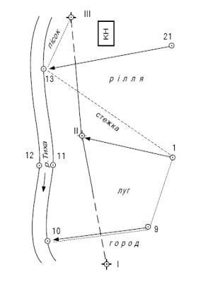 2. Усі контури та предмети місцевості зарисовують у довільному масштабі, дотримуючись візуально сприйнятих форм та умовних знаків.