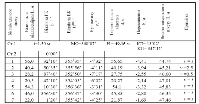8. Результати вимірювань заносять до журналу тахеометричного знімання (рис. 3).
