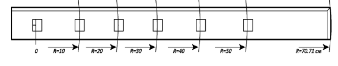 Потім приблизно перпендикулярно від точки А з радіусом R =50 см проводять штрих біля точки С.