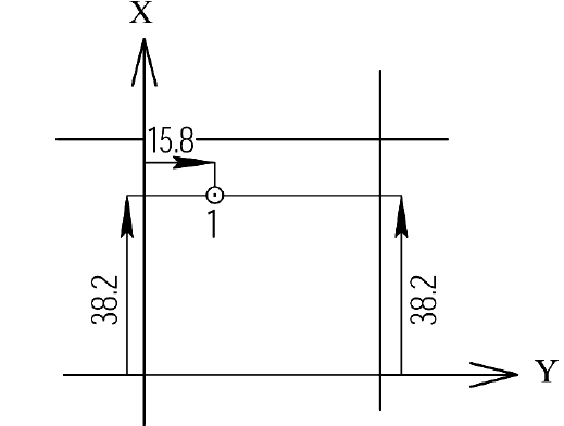 З двох боків цього квадрата за допомогою циркуля-вимірника відкладають уверх залишок абсциси точки 1 над абсцисою нижньої сторонни квадрата: X1 – XН = 38.18 ≈ 38.2 м