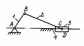 В зависимости от характера движения и назначения звенья имеют определенные названия. На рис. 1.1: звено 1 - кривошип; звено 2, совершаются сложное плоско-параллельное движение - шатуном; звено 3, совершающее качательное движение - коромыслом; неподвижное звено 4 является стойкой.