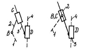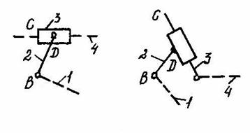 Наиболее распространенными являются группы второго класса, которые разделяют на пять видов. Вид группы второго класса определяется в зависимости от числа и относительного расположения поступательных и вращательных кинематических пар в ней (рис. 1.6, а - д).