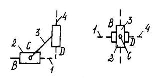 Переходим к выделению структурных групп, начиная со звеньев, наиболее удаленных от ведущего звена (рис. 1.7, б). Выделенные группы и порядок их выделения представлены на рис. 1.7, в, г. Каждая группа состоит из двух звеньев и трех кинематических пар пятого класса и поэтому является группой второго класса; первая группа (рис. 1.7, в) - второго вида (одна крайняя пара поступательная); вторая группа (рис. 1.7, г) - первого вида (все пары вращательные). Следовательно, механизм привода конвейера - второго класса, т.к. наивысший класс группы, входящей в состав этого механизма, второй.