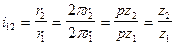 В зубчатых механизмах величину передаточного отношения определяют через отношение чисел зубьев. Если умножить числитель и знаменатель отношения (3.4) на 2p, получат отношение длин начальных окружностей. Величина их может быть заменена произведением чисел зубьев на расстояние между одноименными профилями соседних зубьев (шаг по начальной окружности р), одинаковое для пары зацепляющихся колес: