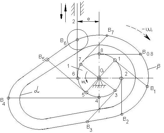 Рассмотрим внецентренный кулачковый механизм (рис.3.9), ведущее звено которого (кулачок) очерчено рабочим профилем