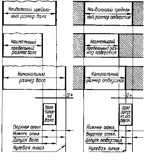 Рис. 7.1. Предельные размеры отверстия и вала, определяющие поля допусков